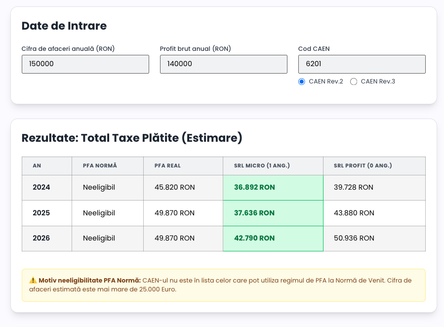 Calculatorul taxe și impozite este instrumentul potrivit ca să știi ce fel de SRL, micro sau profit, să alegi.